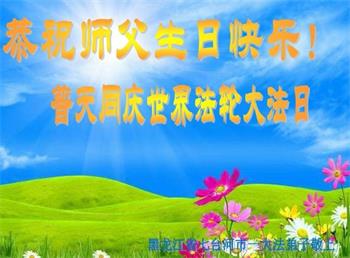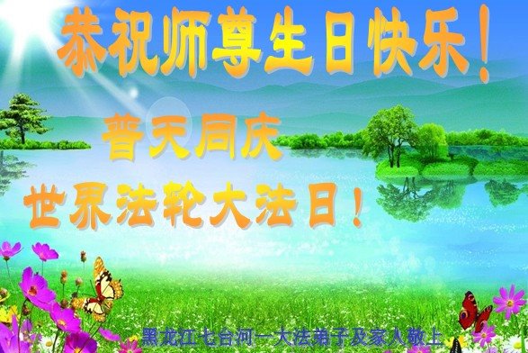 普天同庆世界法轮大法日! 黑龙江省七台河市大法弟子恭祝师父生日快乐!