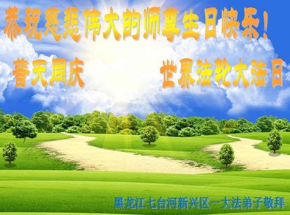 普天同庆世界法轮大法日! 黑龙江省七台河市大法弟子恭祝慈悲伟大的师父生日快乐!