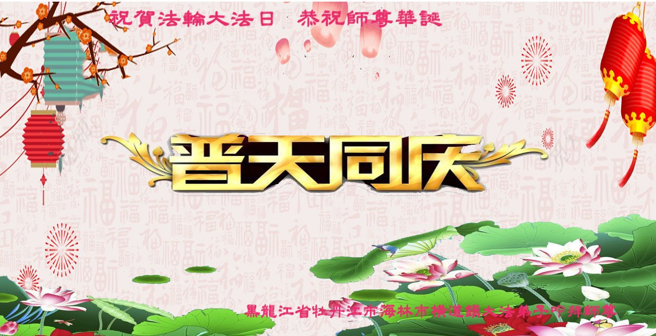 普天同庆5.13世界法轮大法日! 黑龙江省牡丹江市海林市大法弟子恭祝师尊华诞暨世界法轮大法日!