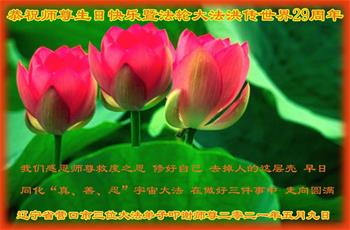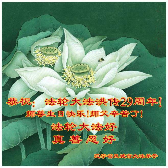 恭祝世界法轮大法日! 恭祝世界法轮大法日,庆祝法轮大法传法29周年纪念日! 恭祝师尊生日快乐!法轮大法好!真善忍好! 师父辛苦了! 辽宁省凤城大法弟子 辽宁省鞍山市大法弟子及家属恭祝师父生日快乐!