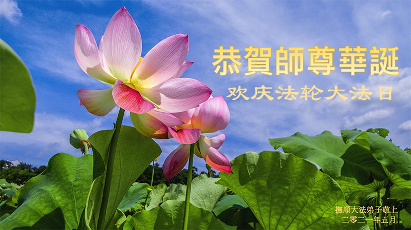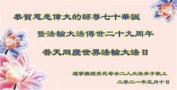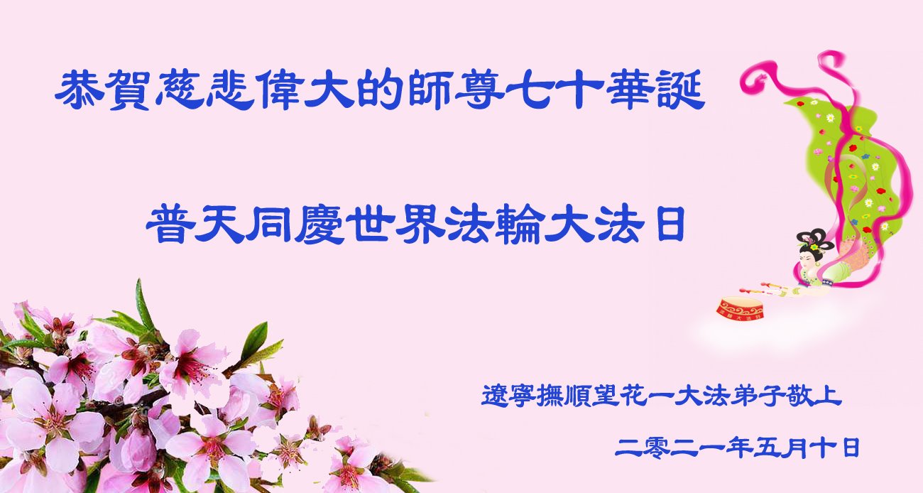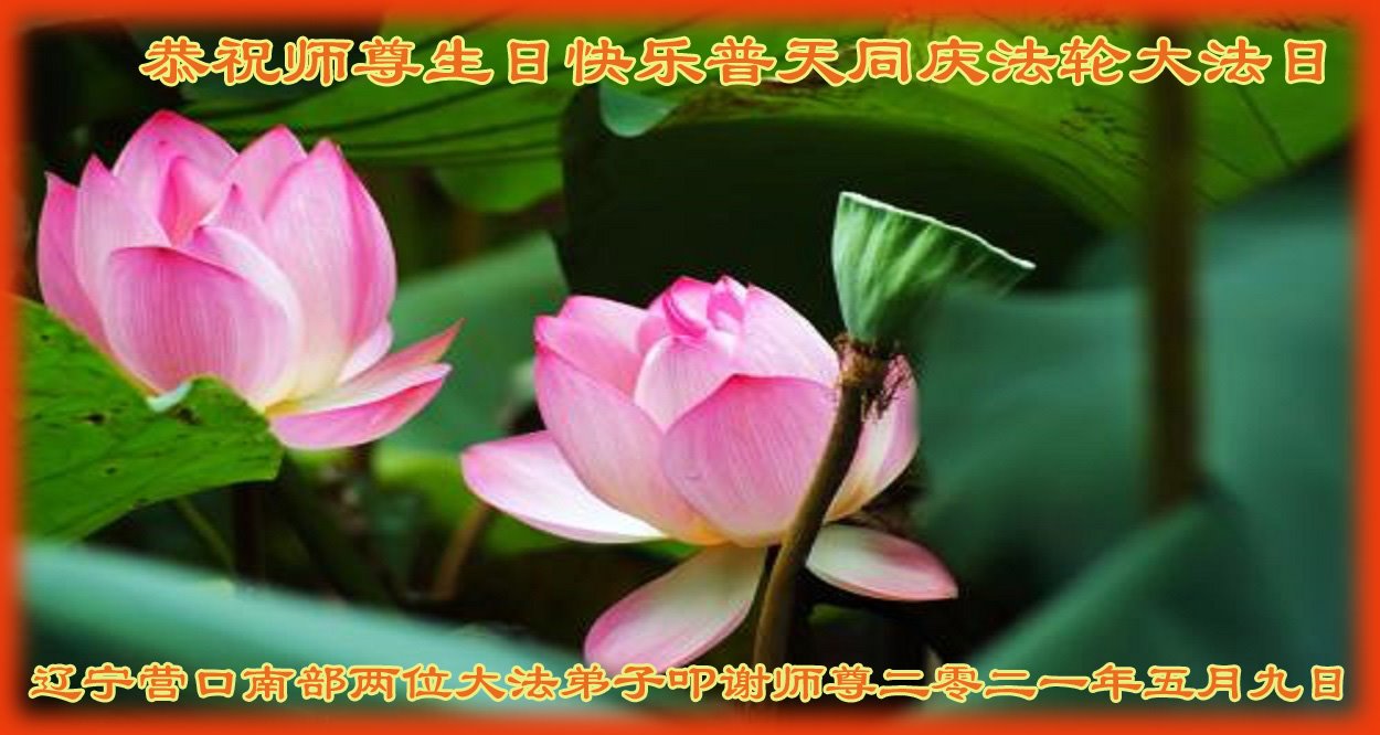 【明慧网二零二一年五月十三日】 辽宁鞍山大法弟子恭祝慈悲伟大的师父生日快乐!恭祝世界法轮大法日!