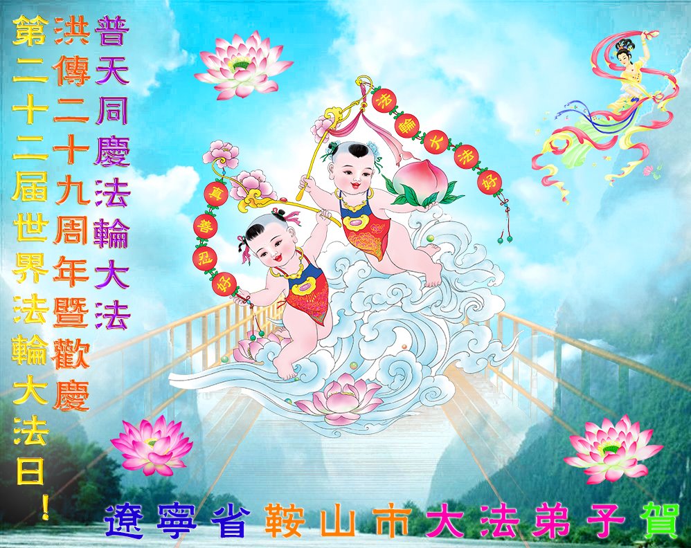 恭贺第二十二届世界法轮大法日! 辽宁省鞍山市一资料点全体大法弟子恭祝师父生日快乐!