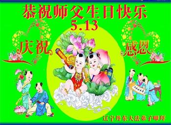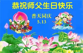 师父您好,您辛苦了,感谢师父慈悲救度。弟子无法用语言来表达感恩伟大慈悲师父的救度。在今后修炼的路上我们一定要修好自己,向内找,做好师父要求的三件事,珍惜万古机缘。 辽宁丹东大法弟子庆祝法轮大法日!恭祝师父生日快乐!