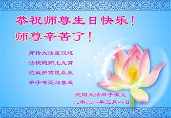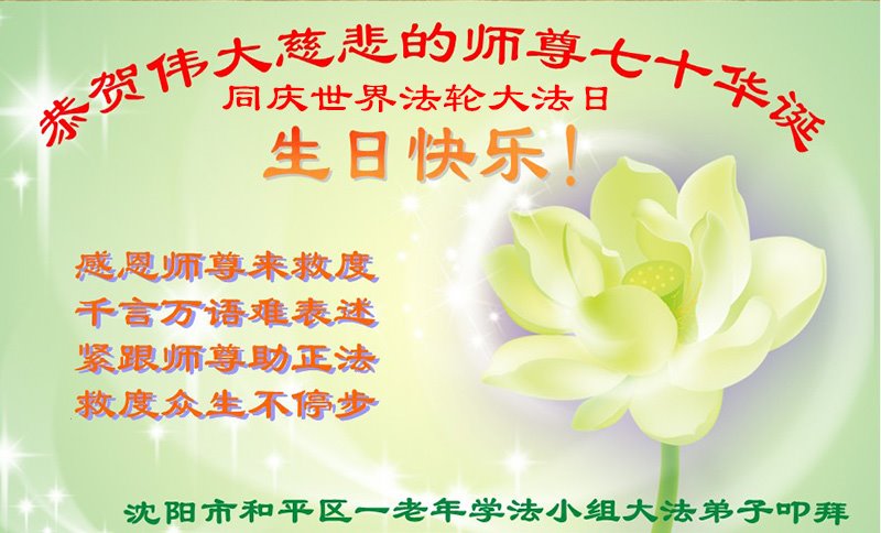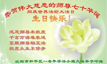 辽宁省沈阳市大法弟子恭贺法轮大法日!恭祝师尊生日快乐!
