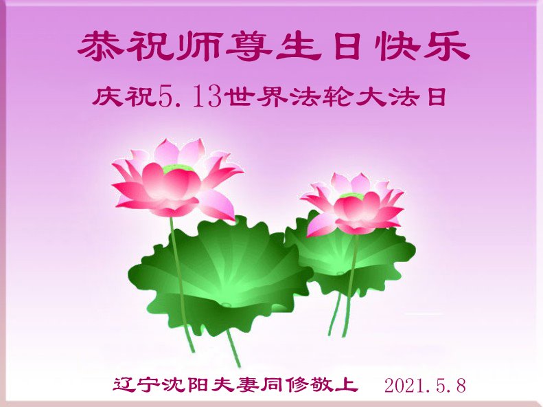 恭祝师父生日快乐!恭贺5.13世界法轮大法日! 辽宁省沈阳市大法弟子叩拜师父! 2021.5.8敬上 辽宁沈阳夫妻大法弟子庆祝5.13世界法轮大法日!