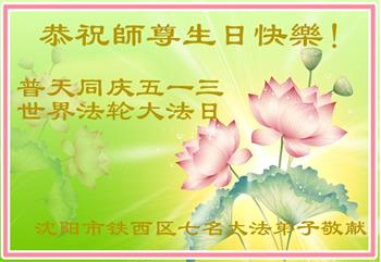 辽宁省沈阳市铁西区七名大法弟子敬献 辽宁省沈阳一大法弟子恭祝师尊生日快乐!