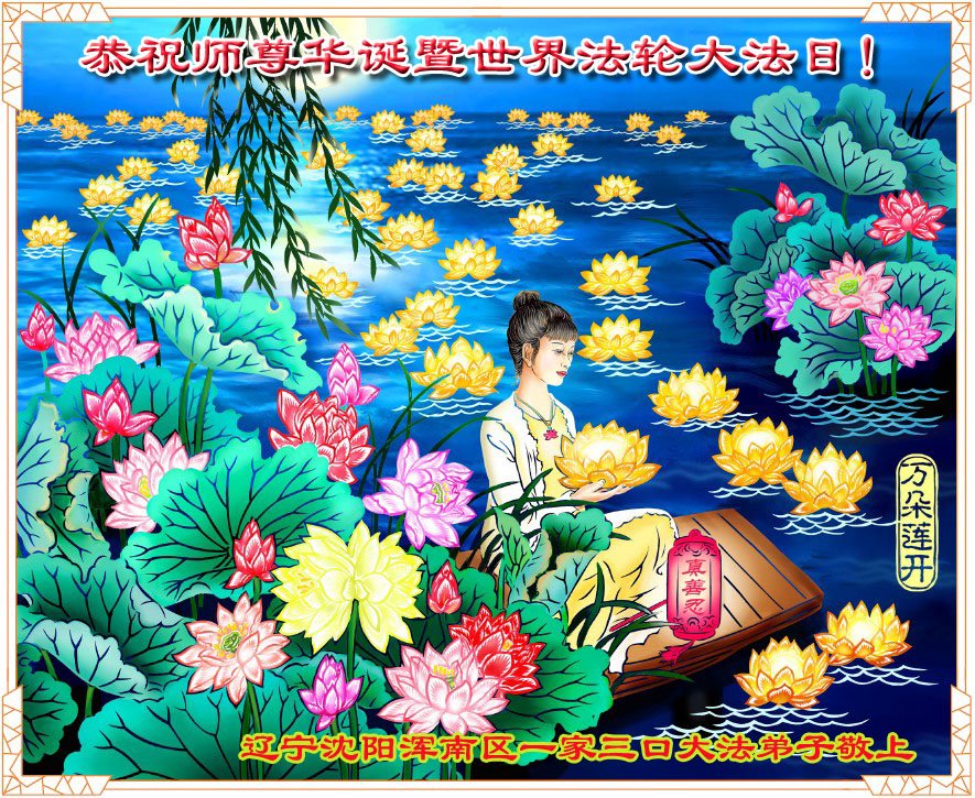 辽宁沈阳浑南区一家三口大法弟子恭贺世界法轮大法日暨师尊华诞!
