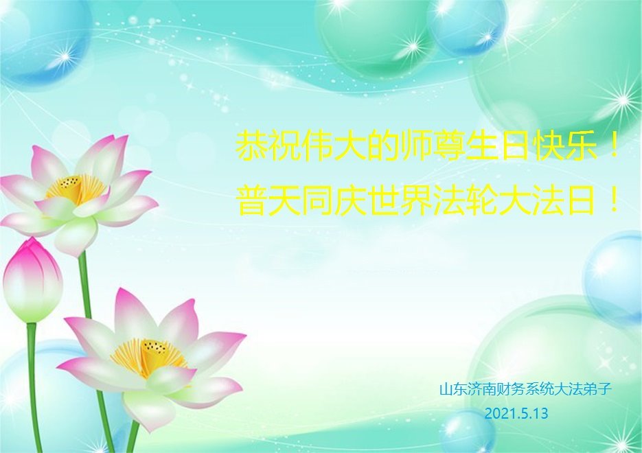 山东东营暨胜利油田大法弟子恭贺师尊华诞暨世界法轮大法日! 山东省济南财务系统大法弟子恭祝伟大的师尊生日快乐!