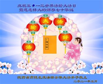 陕西西安市高陵长庆油田大法弟子恭祝师尊70华诞暨世界法轮大法日!