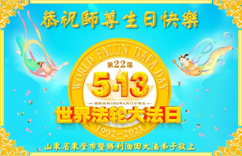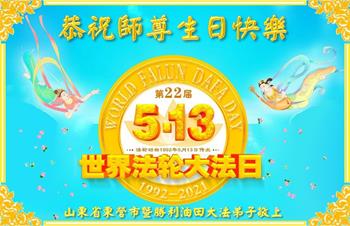 【明慧网二零二一年五月十四日】 山东东营暨胜利油田大法弟子恭贺师尊华诞暨世界法轮大法日!