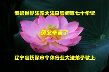 恭贺5·13世界法轮大法日! 辽宁省抚顺市个体行业大法弟子恭祝师尊华诞快乐! 恭贺5·13世界法轮大法日! 水利系统大法弟子恭祝师尊华诞暨世界法轮大法日!