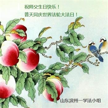山东滨州大法弟子普天同庆世界法轮大法日!祝慈悲伟大的师父生日快乐!