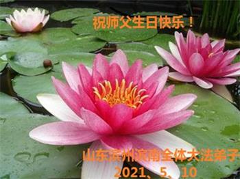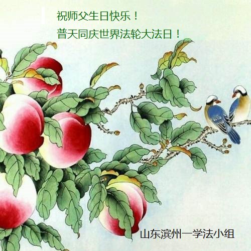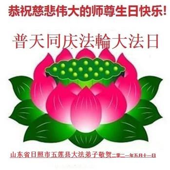 恭祝伟大慈悲的师父生日快乐! 师父辛苦了! 感恩师父的无量恩德和慈悲救度! 弟子们在修炼的路上一定以法为师,做好三件事,让师父少操心,跟上师父的正法進程。 山东省莱州市9名真相小组大法弟子 恭贺伟大的师尊生日快乐! 无限感恩师尊的无量慈悲与救度! 一名大法弟子及两名家属 山东淄博大法弟子恭祝师尊华诞暨世界法轮大法日!