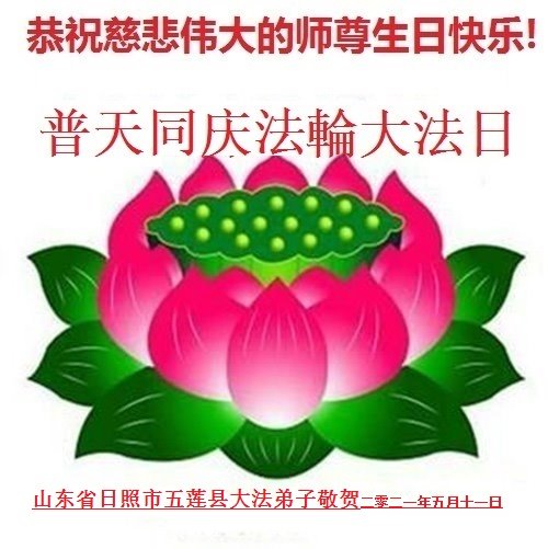 师父您好!感恩师尊的慈悲救度与看护!精進实修跟师父一起回家。 山东省日照市五莲县大法弟子恭贺世界法轮大法日!恭祝师尊生日快乐!