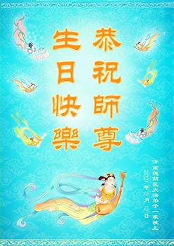 山东济南大法弟子恭祝慈悲伟大的师尊生日快乐!