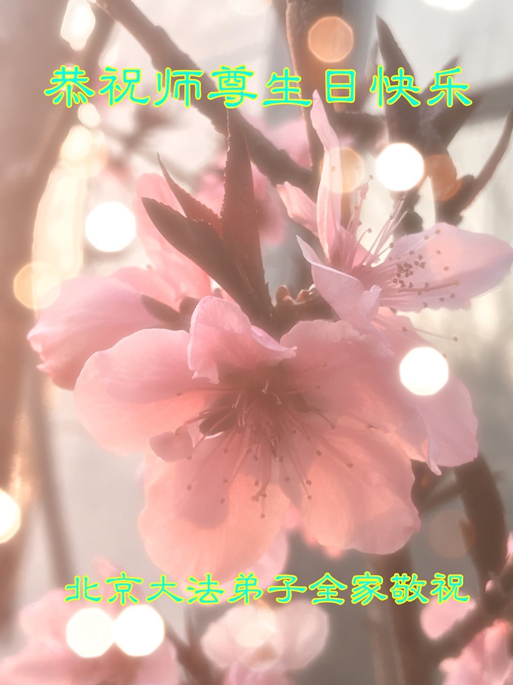 感恩师尊慈悲救度,弟子叩拜! 北京大兴一大法弟子全家恭祝师尊生日快乐!暨世界法轮大法日!