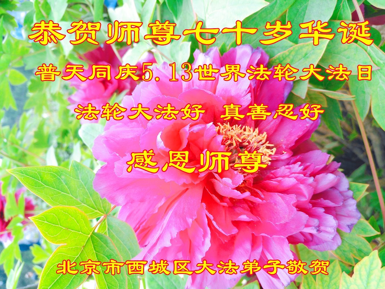 师父好!感恩师父的慈悲救度!师父您辛苦了!合十! 弟子叩拜! 北京市西城区大法弟子恭祝师尊七十岁华诞普天同庆5.13世界法轮大法日!