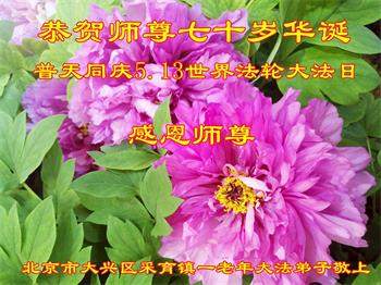 法轮大法好 真善忍好 北京一老年大法弟子恭祝师尊生日快乐!