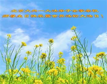 北京大兴大法弟子一家三口恭祝世界法轮大法日暨师尊华诞!