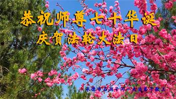 师父好!师父辛苦了!叩拜师父! 在普天同庆的法轮大法日来临之际,恭祝慈悲伟大的师尊生日快乐!感恩伟大的师尊慈悲救度。在末后的日子里,严格要求自己,珍惜时间真正的做到实修,随师父回归。 谢谢师父!法轮大法好!真善忍好! 河北省承德市一大法弟子恭祝师尊生日快乐!恭贺世界法轮大法日!