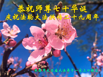 河北省承德市大石庙大法弟子一家三口恭祝师尊七十华诞!