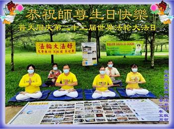 【明慧网二零二一年五月十四日】 马来西亚吉隆坡TTDI公园炼功点大法弟子恭祝师尊生日快乐!