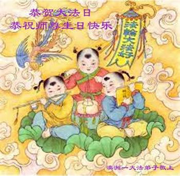 (图是明慧学校学生画的恭祝师父生日快乐的贺卡) 澳大利亚全体大法弟子恭贺世界法轮大法日暨师尊华诞!