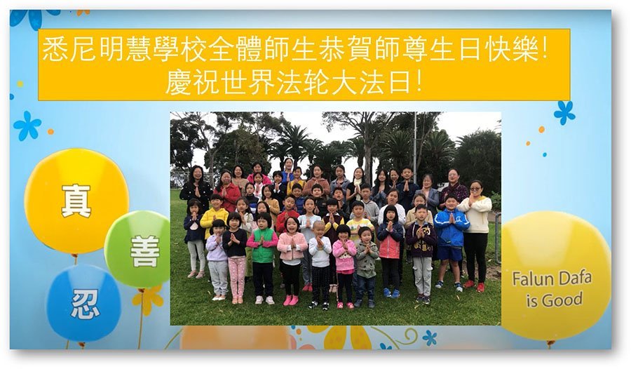 悉尼明慧学校全体师生庆祝世界法轮大法日!恭祝师尊生日快乐!