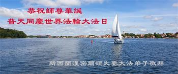 新西兰汉密尔顿夫妻大法弟子庆贺世界法轮大法日!恭祝师尊华诞!