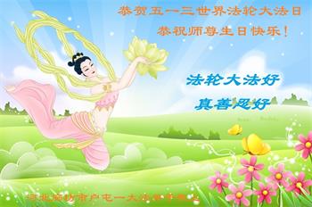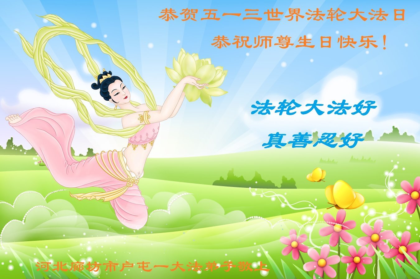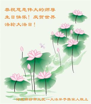 河北省廊坊市大法弟子恭祝慈悲伟大的师尊生日快乐!恭贺世界法轮大法日!