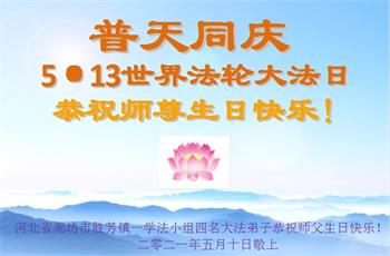 河北省廊坊市胜芳镇一学法小组四名大法弟子恭祝师父生日快乐! 二零二一年五月十日敬上 河北省廊坊市新华路大法弟子恭祝师父生日快乐!