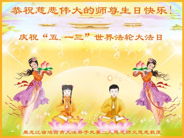 【明慧网二零二一年五月十四日】 黑龙江省鸡西大法弟子夫妻恭祝师父生日快乐!