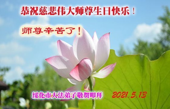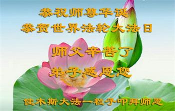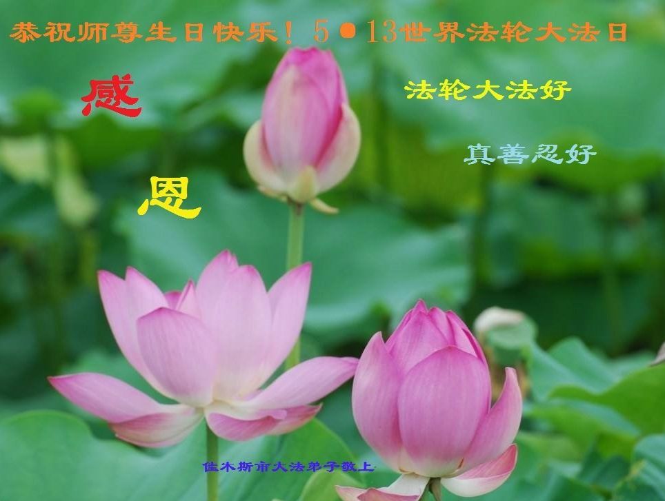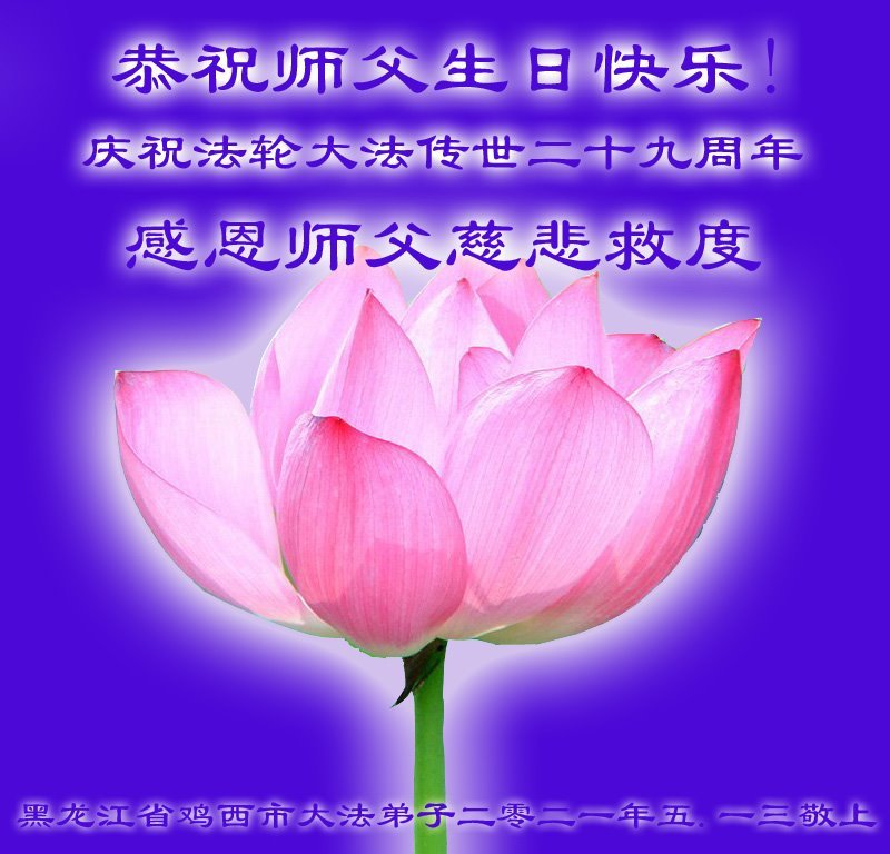 师尊您辛苦了,叩谢师恩。 黑龙江佳木斯市大法弟子恭祝师尊生日快乐!恭贺世界法轮大法日!