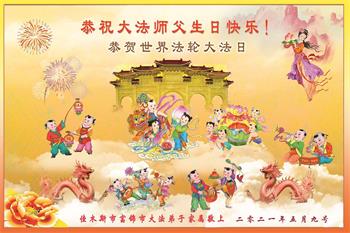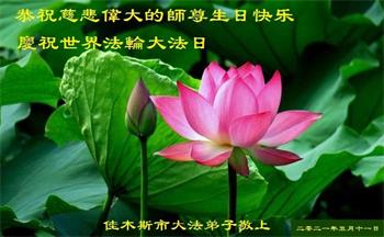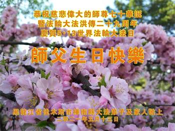 黑龙江省佳木斯大法弟子恭贺世界法轮大法日!恭祝师父生日快乐!