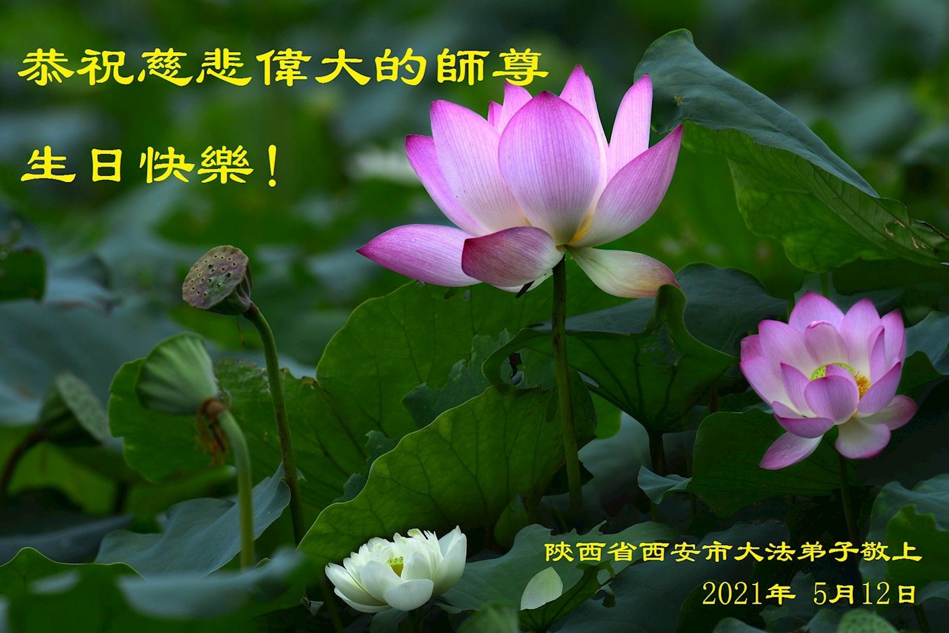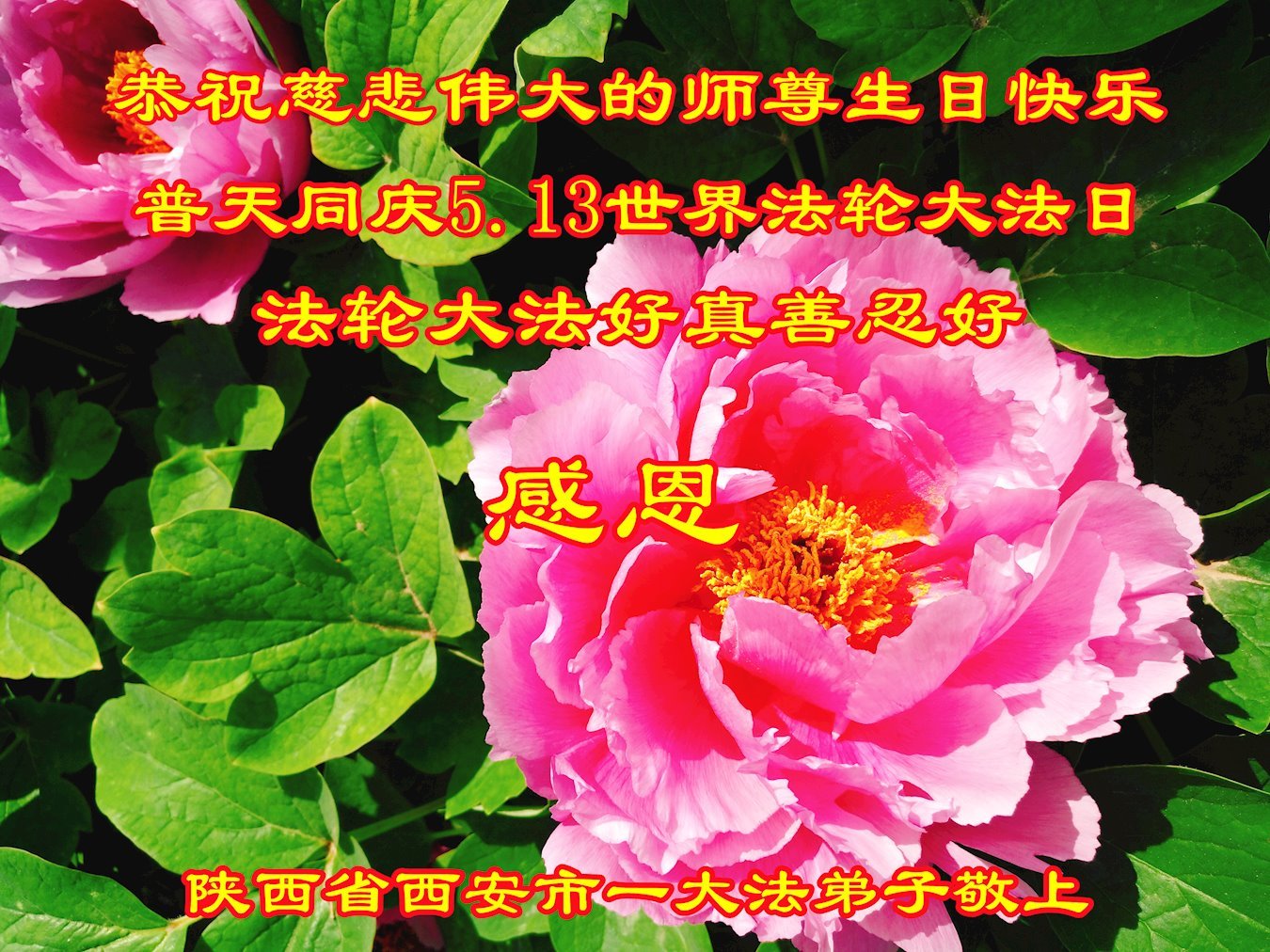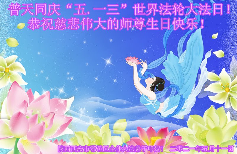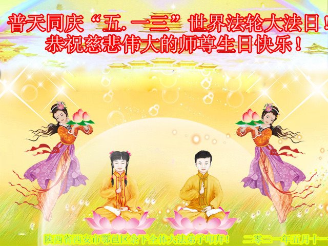 陕西省西安市大法弟子恭祝伟大的师尊生日快乐!恭贺世界法轮大法日!