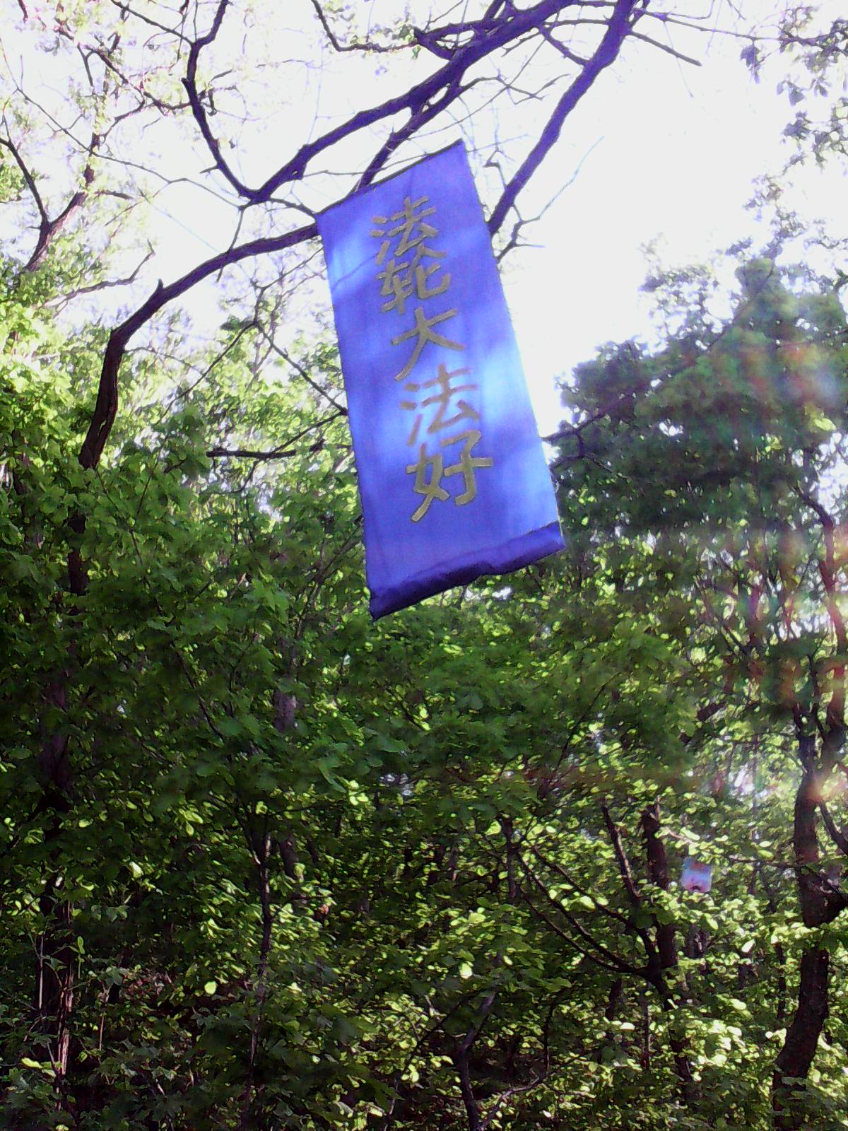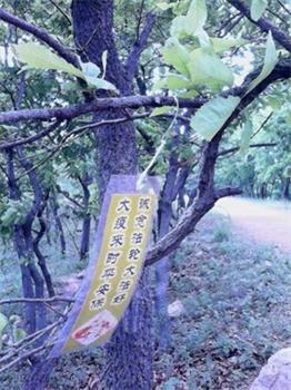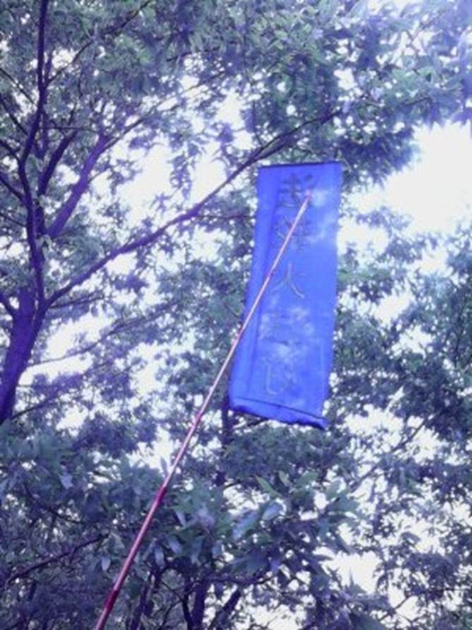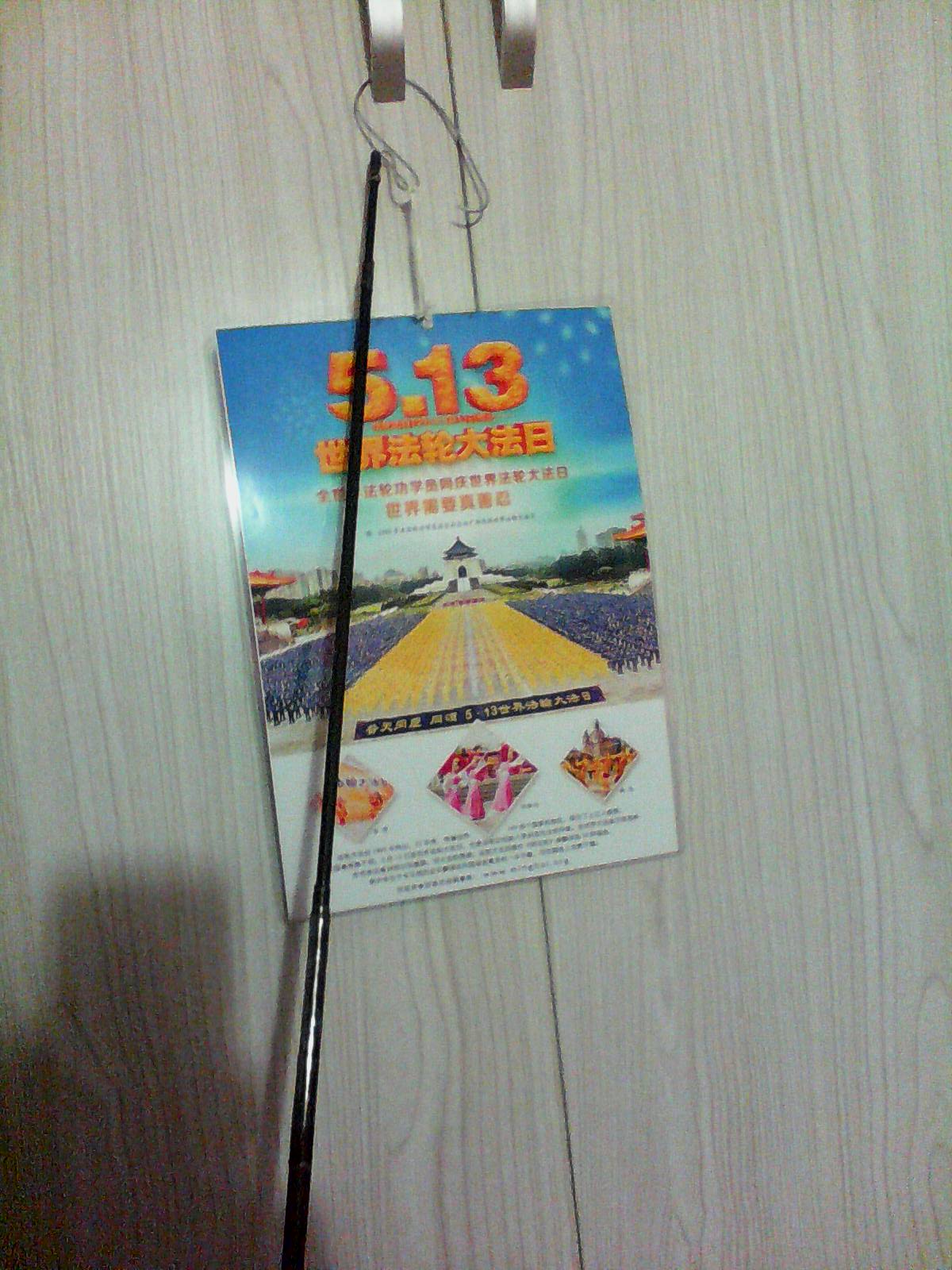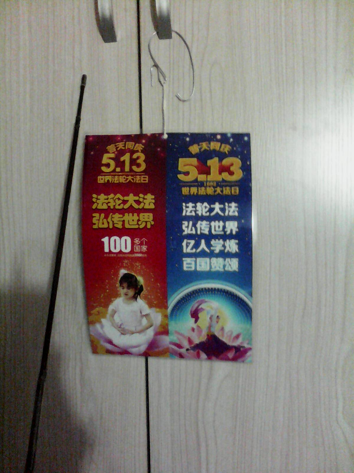| 【明慧网二零二一年六月十七日】普天同庆的“5.13”世界法轮大法日期间,当地一位老同修和她学法小组的同修们更忙了,虽忙碌却有条不紊的做着三件事。 几年来,这些同修们信师信法,在师父的加持、保护和点化下,积累了一些制作条幅、挂条幅、挂树挂、喷字、贴粘贴、借用挂出去的真相材料讲真相等经验。 笔者亲身参与后,发现例如挂条幅、树挂等曾经认为“望而却步”的项目,做起来并不难,于是请老同修写出来,和同修们交流,希望能抛砖引玉,能有更多的同修参与其中,从不同角度,利用多种方式更好的讲清真相、证实大法,震慑邪恶、救度众生。 以下是老同修写的心得和经验。 做、挂条幅的修炼过程 二零一四年,同修给我拿来一箱子用布做的条幅,上书“法轮大法好,真善忍好”九个大字。黄布红字、蓝布黄字的,都是一米五长。这可把我难住了,怎么挂呀?从没做过,也没看过别人怎么做。和周围同修交流,都说没办法。我想那我想办法吧,可能就该我做吧。 于是,我就尝试着到外面捡石头,用布包好,拴在条幅上,往树枝上扔,往电线上扔。结果扔不准,不是高就是低,要不就偏,要不就缠树上了。我想这方法不行。又想到买弹弓,往树上射,结果还是不可行,射不上去。我急得直哭,实在没有办法了,我就想起师父。我跪在师父法像面前,求师父,“师父,弟子太笨了,实在是没办法完成任务,请师父加持弟子,帮帮弟子吧。” 师父真帮啊,慈悲的点化我,使我突然想到要有个木杆就好了。于是我拿着条幅,坐车到郊外去,上山找了一根带杈的树枝,成功挂到树上两个条幅。我很高兴,但又想也不能上哪都扛个大树枝吧,还是不行。 我又去求师父,师父点化我,要有个杆,要长就长,要短就短,拿着方便就好了。于是,我起身到河边走走,看见河边有人钓鱼,鱼竿很长,不用时能把它收短,装在包里,心里一亮,鱼竿! 我马上到渔具商店,一问价钱,最少的七、八百,贵的一、两千。太贵了,我上旧物市场看看有没有便宜的。到那一看,有个摆地摊的放着一个杆,我一问,是个鱼竿。他说儿子上大学了,不用了,把它卖掉。我问多少钱,他说二十五元,我听成二百五十元,心想这也挺便宜了,我说这根杆我买了。我从包里拿出三百元,他说:“你给我三十元,我找你五元,一百元钱找不开,刚上班。”“啊,才二十五元啊,这么便宜。”我高兴坏了,知道是师父成全我。于是付了钱,连忙往家跑。 鱼竿买回来了,可难题又来了,杆和条幅怎么衔接呀,怎么挂呀,用各种办法都不行。我又问师父:怎么连接呀?脑子中出现一个意念:“做钩!”我连忙去买铁丝,回来做。但还是不知道要做成什么样的合适。先后做了五种,一次次的改進,研究了半年,第六种终于成功了(后附图解)。现在,用不到一分钟的时间,就能把条幅挂在树上或其它地方,如遇刮风天两、三分钟就可完成,效果很好。 我们小组又自己做“法轮大法好 真善忍好”等条幅,后来资料点又给我们提供更精美的树挂,内容丰富多彩,彩色的,图文并茂,有的经过塑封,挂在户外下雨天都不怕。 这次疫情后,我们惊奇的发现,众生都往家拿。有一次,在我挂树挂的路上遇到一个人,嘴里叨咕“我要是有一个就好了(指有大法内容的树挂)。”我因为不想暴露身份,就说自己刚好包里有一个之前捡到的,送给你吧,她如获至宝,还说要是再有几个就好了。我感动众生都在觉醒,明白的一面都知大法好,盼着得救。 鱼竿也在不断的变化着,第一根杆完全伸长后长四米二,第二根六米,第三根七米五,第四根三米。我想要多长的杆,师父就能让我买到。现在知道,可以上网买,手机搜索“儿童鱼竿”,可以买到不同长度的鱼竿。收缩后,只有一尺长,携带非常方便。 我们学法小组救人的项目是:贴、写、挂、喷、讲。 1、 贴:是指往电杆、墙体等适合的平面粘贴“法轮大法好 真善忍好” “天灭中共”等内容的不干胶。 2、 写:是指用记号笔往电线杆、墙、楼道内等小一点面积的能书写的平面上写大法真相标语;(记号笔有黑、红两种颜色,日杂商店、超市、文化用品商场都可买到。墨水用完了,笔的前端能拔下来,用“POP唛克笔专用补充液” 可以多次注水(文化用品商场可以买到))。 3、 挂:是指用鱼竿或直接用手悬挂大法条幅、树挂等(详见后附的“补充说明”)。 4、 喷:是指用手摇的自动喷漆往面积大一点的地方如墙体、桥墩、隧道里面、山体、大石头、电线杆、树木等能救人的地方上喷涂“法轮大法好”、“天灭中共”、“三:退.保命”等真相标语;(“手摇的自动喷漆”日杂商店、油漆店都可以买到,有红、黑、蓝等颜色,一般用红色喷“法轮大法好”、“真善忍好”, 用黑色喷“天灭中共”、“三:退.保命”。红色的有几种,我们一般采用“猩红色”,颜色稍重醒目些,橙红色也行。零售一瓶大概十元左右,成箱买有时可批到六、七元钱一瓶) 5、 讲:携带的资料做完后,回来的路上,面对面的讲,可以利用之前做过的真相(粘贴、树挂等)智慧的讲。如看到附近有有缘人,可以借之前挂上去的树挂,用手指着凑过去“看,这是什么?”引起对方注意到大法真相,同时搭上话题,借机讲真相,效果很好。 几年来,同修的念都很正,不论刮风下雨都在外面,中午带饭在外面吃,包里背着师父《洪吟》歇息时学,一路上背法、发正念,一年四季,寒来暑往。有时十几里的路程,同修没有一个说累的、苦的,大