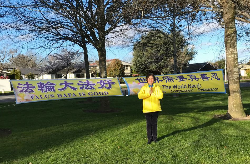 | 【明慧网二零二一年九月十七日】(明慧新西兰记者站报导)二零二一年的九月,南半球的新西兰春意盎然,一年一度的中秋节即将来临,新西兰法轮功学员感恩师父的慈悲救度。得法之初的喜悦,心性提高后境界的升华,在修炼中的茁壮成长,众生明白真相后发自内心的感恩,这点点滴滴的背后都是师尊无量的付出和承担。学员们非常珍惜这个得之不易的万古机缘,在这历史最关键的时刻,立志修好自己,助师正法,救度更多的众生。 “我真正体会到生命的幸福和荣耀”  图1:刘建琴祝慈悲伟大的师父中秋佳节快乐! |