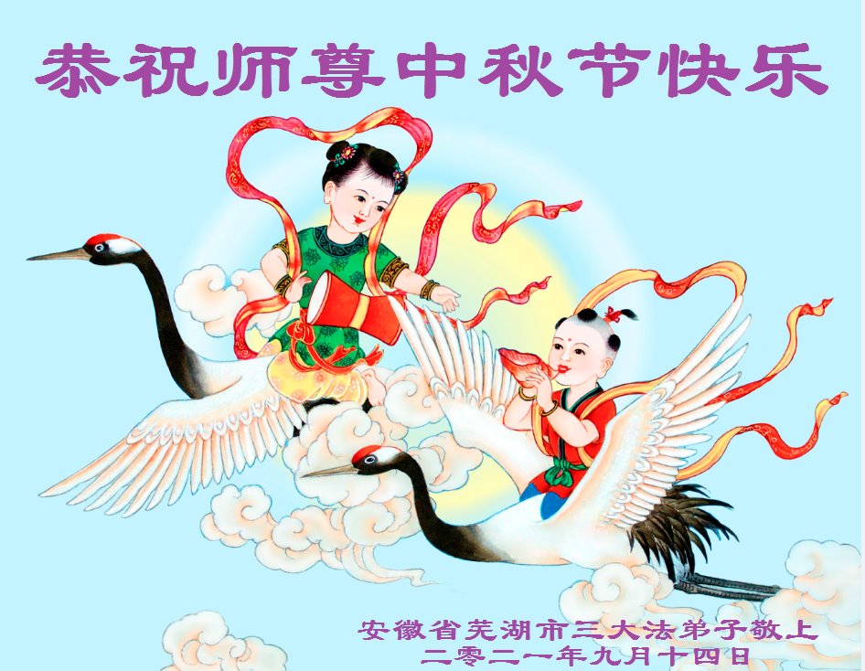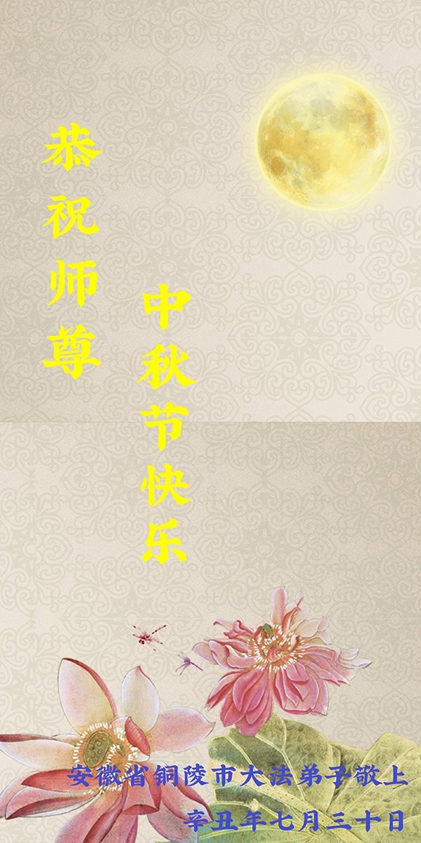 恭祝师尊中秋节快乐! 安徽省芜湖市三位大法弟子敬上 安徽某县八个学法小组大法弟子恭祝师尊中秋快乐!