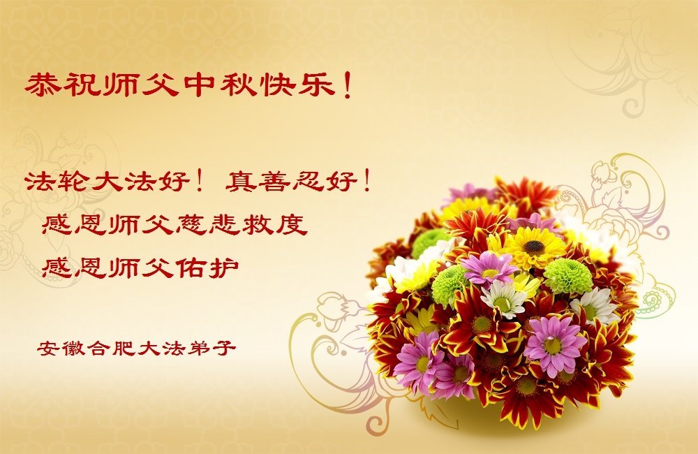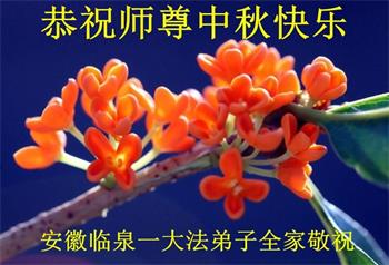 合肥一炼功点大法弟子向师尊问好: 中秋快乐!师尊好!我们炼功点大法弟子继续做好三件事,不辜负师尊苦度。谢谢师尊。 合肥一炼功点大法弟子敬上 安徽临泉一大法弟子全家恭祝师尊中秋快乐!