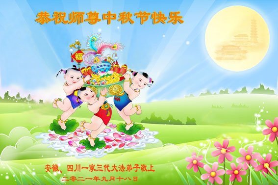 安徽、四川一家三代大法弟子恭祝慈悲伟大的师尊中秋节快乐!