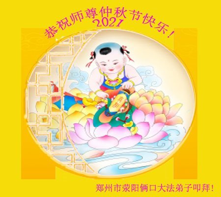 师尊您放心!我们荥阳全体大法弟子一定整体配合好,正念正行,坚定的信师信法,做好三件事,修好自己,多救人。 河南省郑州市荥阳市一老年大法弟子叩拜师尊!恭祝师尊2021年中秋节快乐!