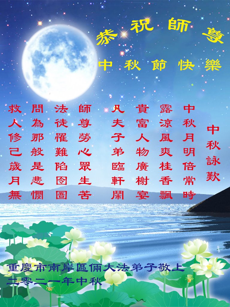 【明慧网二零二一年九月十九日】 重庆市大法弟子恭祝慈悲伟大的师父中秋节快乐!