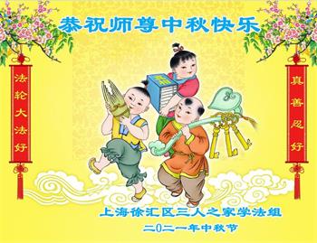上海徐汇区三口之家学法组大法弟子恭祝师尊中秋快乐!