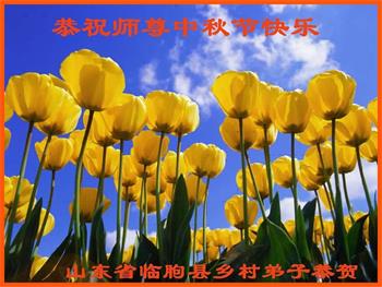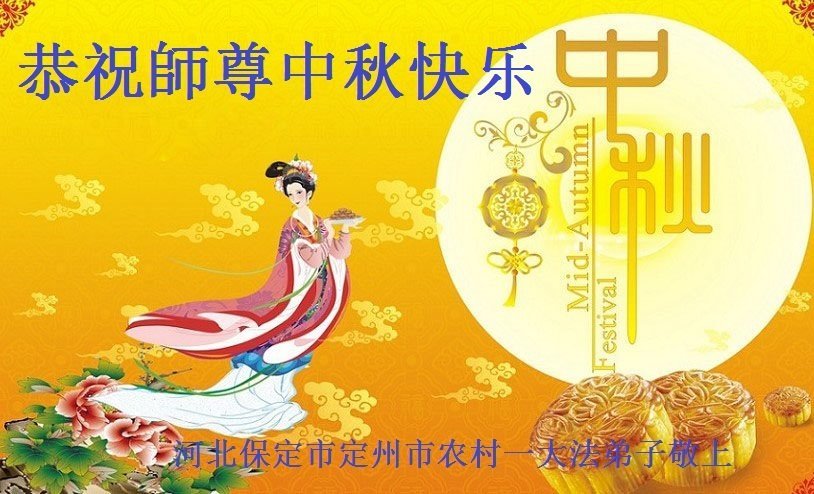 师尊您好:值此中秋佳节之际,弟子们恭祝您节日快乐!师尊您辛苦了!山东省蒙阴县旧寨乡大法弟子们敬上。 山东省潍坊市昌邑市一乡镇全体大法弟子恭祝师父中秋快乐!