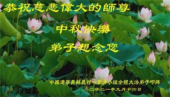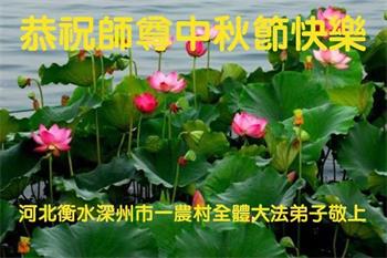 恭祝慈悲伟大的师父中秋节快乐! 河北省衡水市深州市一农村全体大法弟子敬上 山东省潍坊市临朐县乡村大法弟子恭祝师尊中秋节快乐!