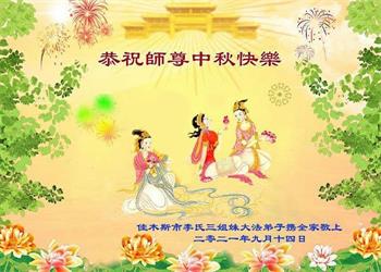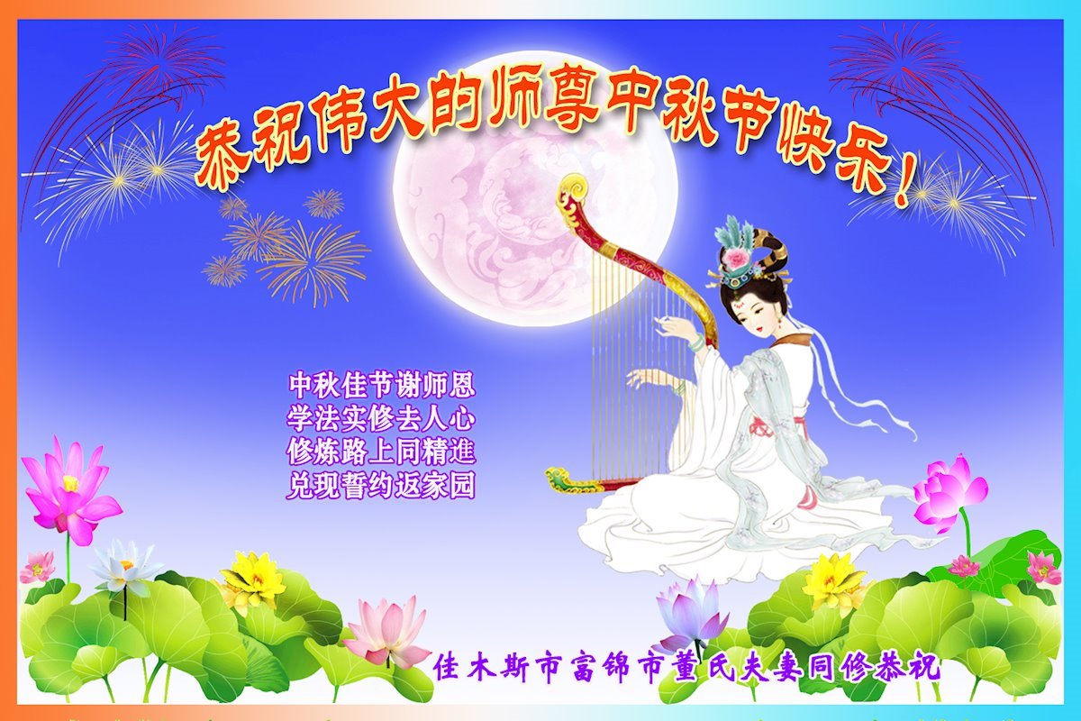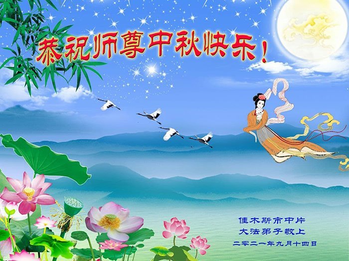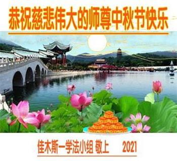 【明慧网二零二一年九月十九日】 黑龙江省佳木斯市富锦市一夫妻大法弟子恭祝师父中秋快乐!