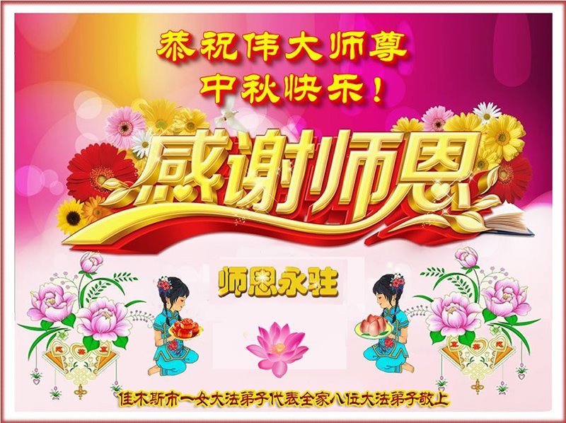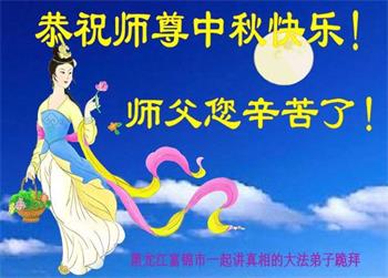黑龙江省佳木斯一女大法弟子代表全家八位大法弟子恭祝师尊中秋快乐!