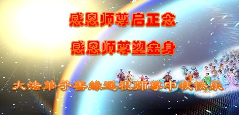 感谢师父无量洪恩,慈悲苦度!我们学法小组大法弟子会更加精進,救度众生,谢谢师父! 北京丰台长辛店大法弟子恭祝慈悲伟大师父中秋节快乐!