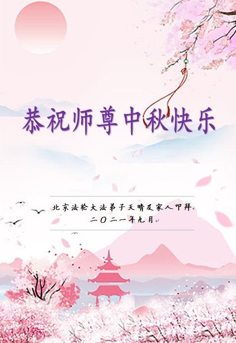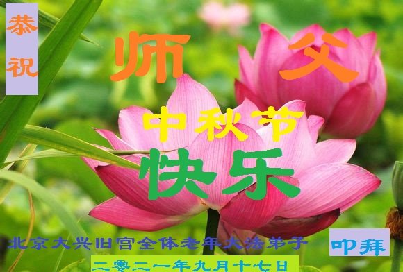 【明慧网二零二一年九月十九日】 中国北京大兴旧宫全体老年大法弟子恭祝师父中秋快乐!