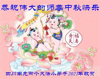 四川南充两个大法小弟子恭祝慈悲伟大的师尊中秋快乐!